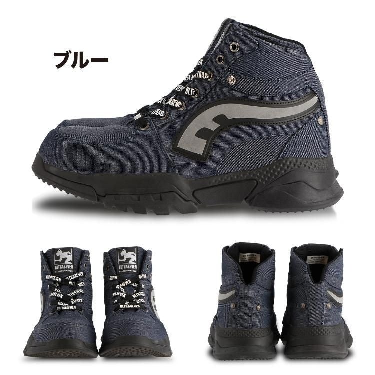 「ウルトラセブン」モデルの先芯を備えたデニムセーフティスニーカー。ウルトラなデザインと、強さ・安心感を兼ね備えた、カジュアルテイストのアイテムだ。
