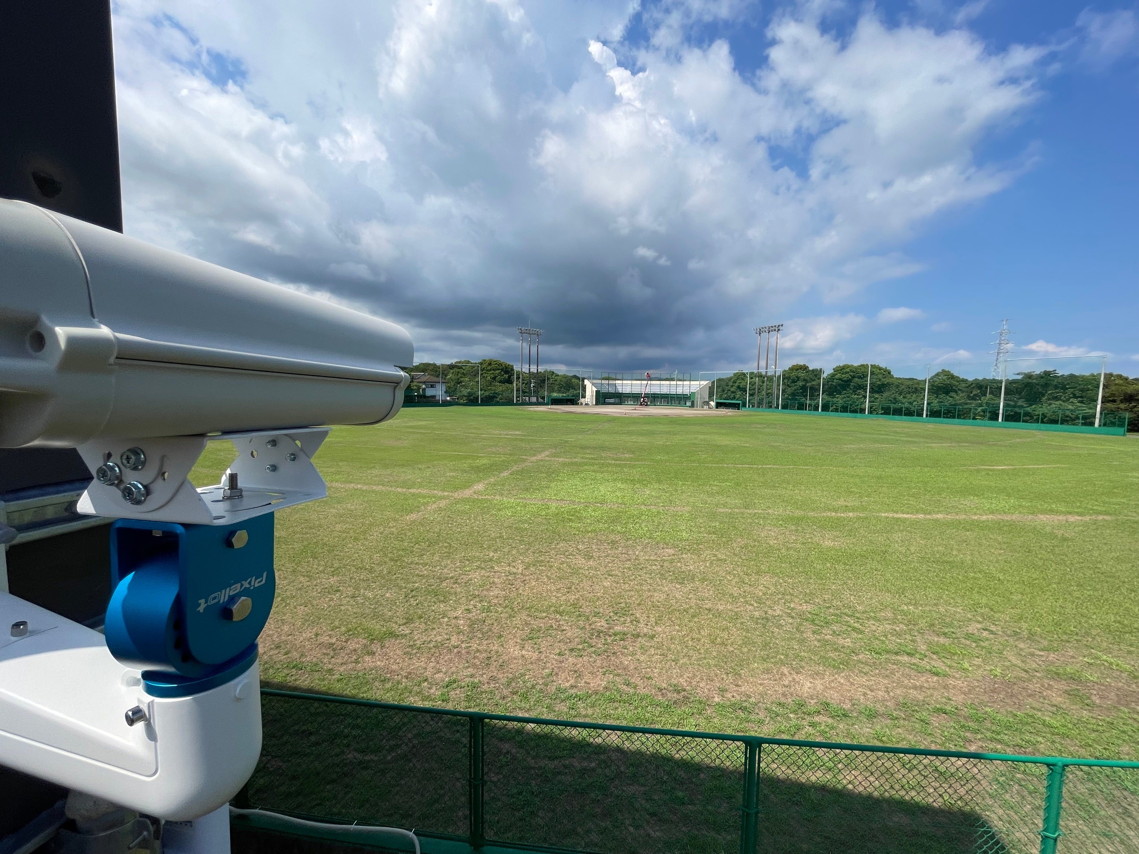 長沢野球場に設置された野球専用AIカメラ(左:ホーム側、右:センター側)