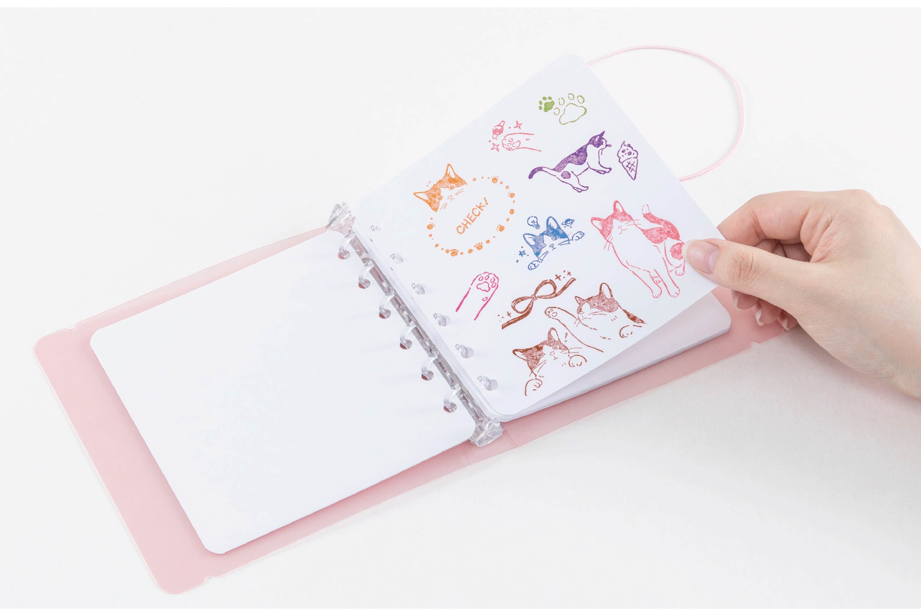 リング式バインダーのため、スタンプをテーマ別に並べ替えたり、ページの追加が簡単に行えます。また大切なページは取り外して自宅で補完したり、スタンプをミスしても取り換えをスムーズに行えます。