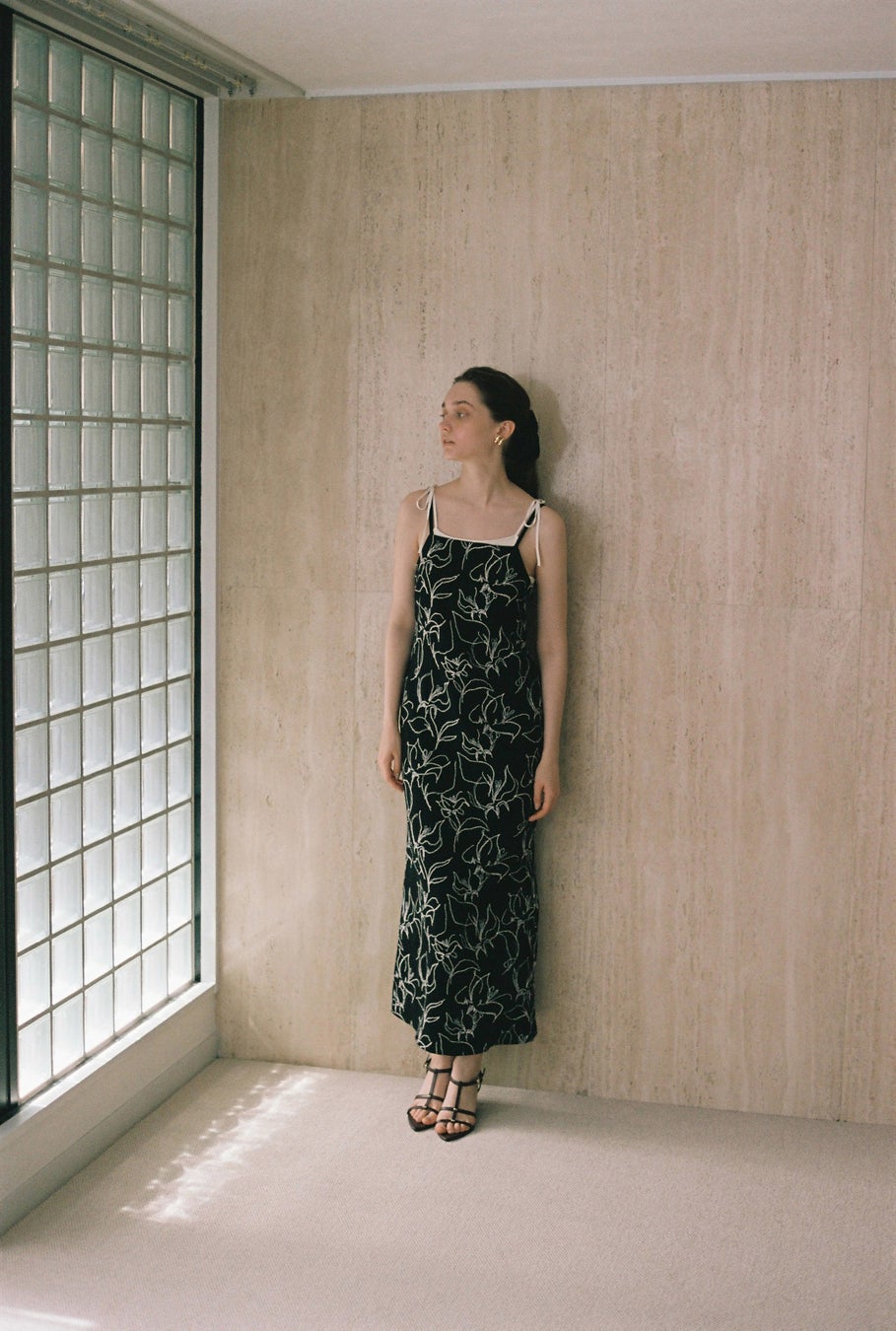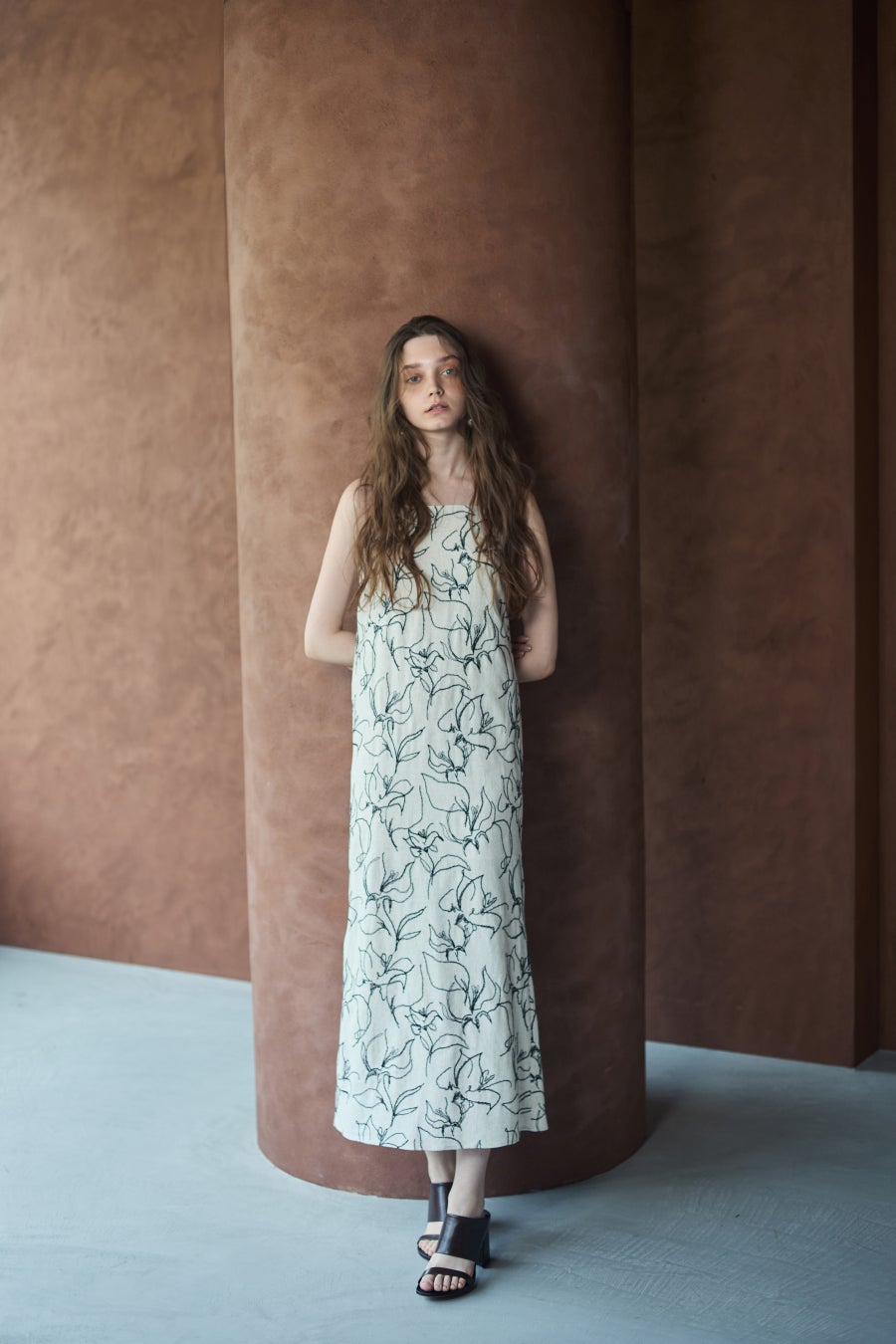 線画フラワーリネンキャミワンピース