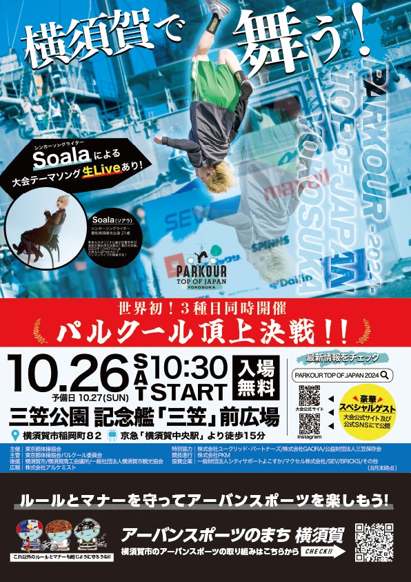 ~“アーバンスポーツのまち横須賀”で日本最高峰のパルクール大会開催~ 開催日:10月26日(土)@神奈川県横須賀市 三笠公園 記念艦「三笠」前広場