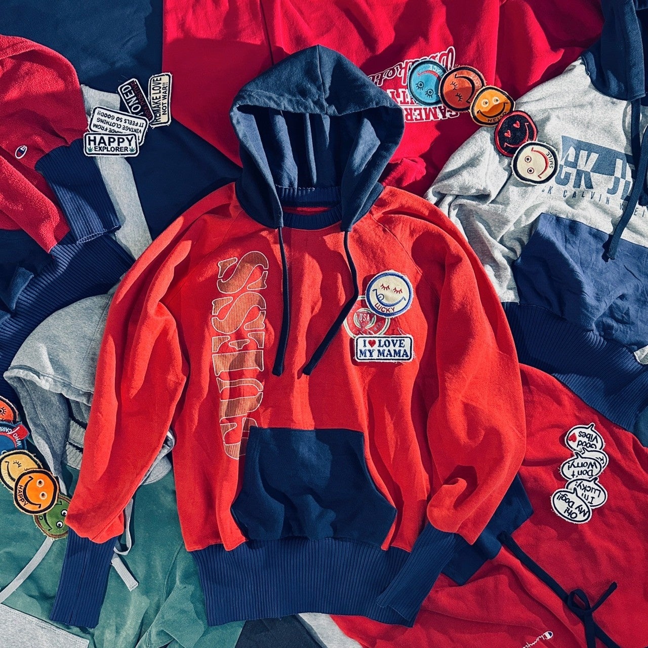 ゼロからお客様がカスタム出来る用にプリントあり無しなど様々なスウェットを解体して再構築しています。