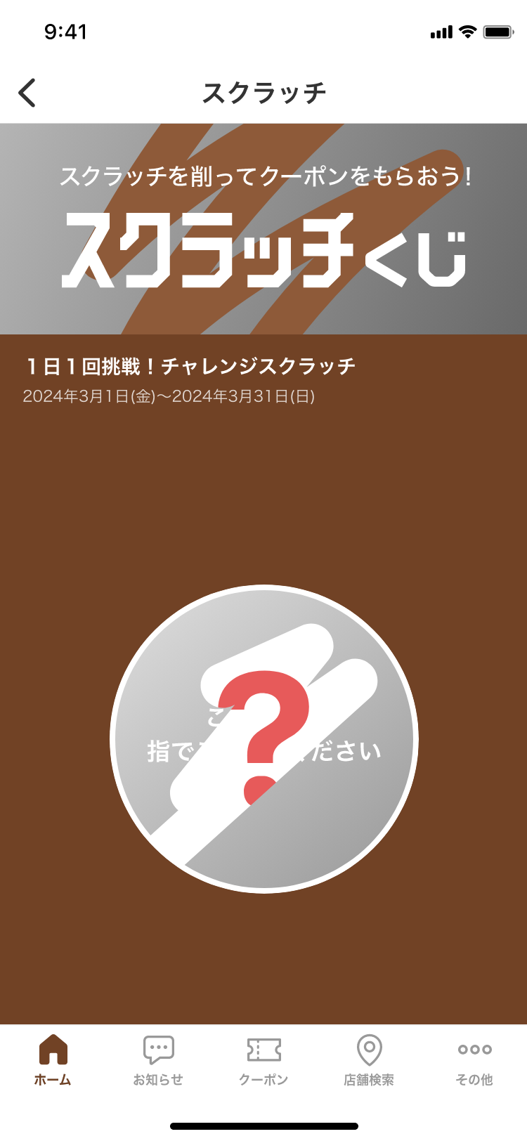 スクラッチクーポン機能とは、スマホ画面上でスクラッチカードを削るとクーポンが当たる抽選機能です。獲得したクーポンを、1回だけしか使用できないように制限する消込機能も搭載しており、当選者限定の特別感のある訴求を行うことができます。