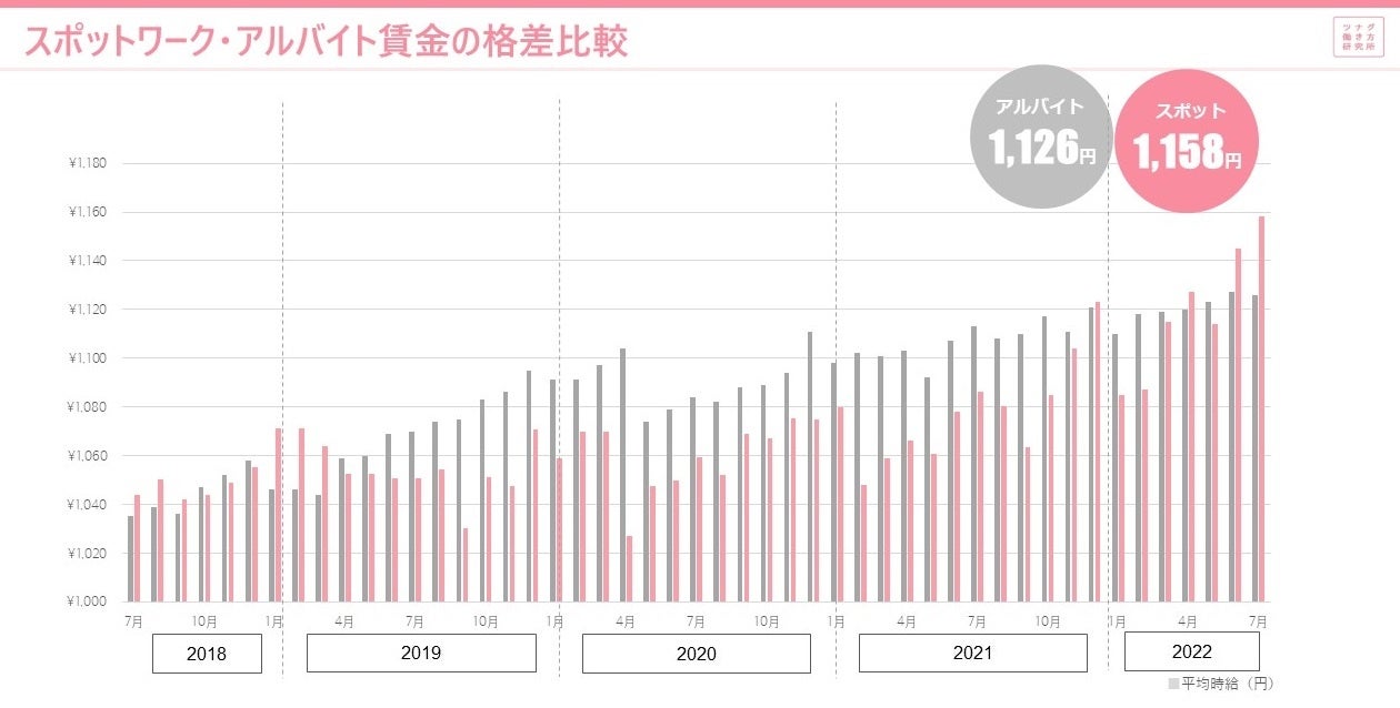 3.スポットワーカーの平均時給は1,158円。通常のアルバイト平均時給より32円高い