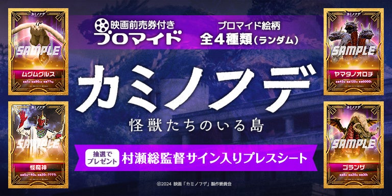 今回は新コンテンツとして『カミノフデ 〜怪獣たちのいる島〜』(2024年7月26日公開)の映画前売券付きブロマイドを2024年5月24日(金)正午より販売開始いたします。