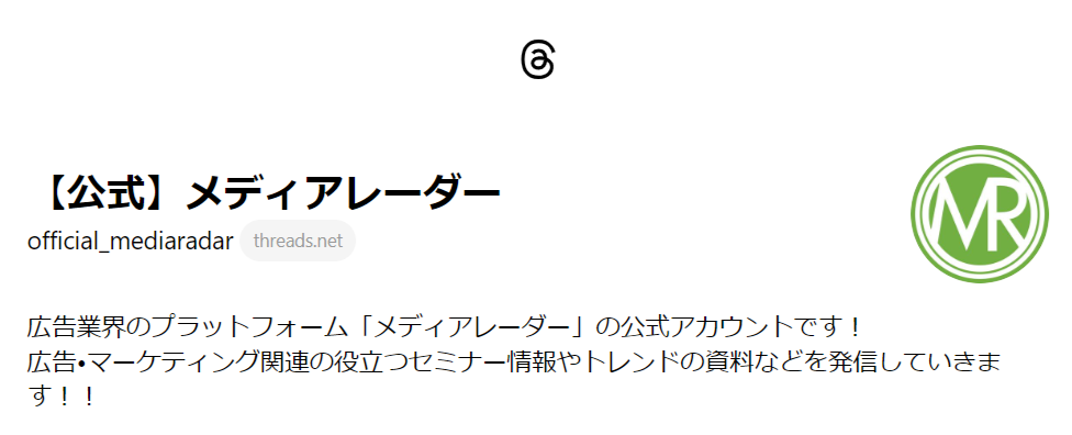 「Threads(スレッズ)」アカウント開設!広告業界のプラットフォーム「メディアレーダー」