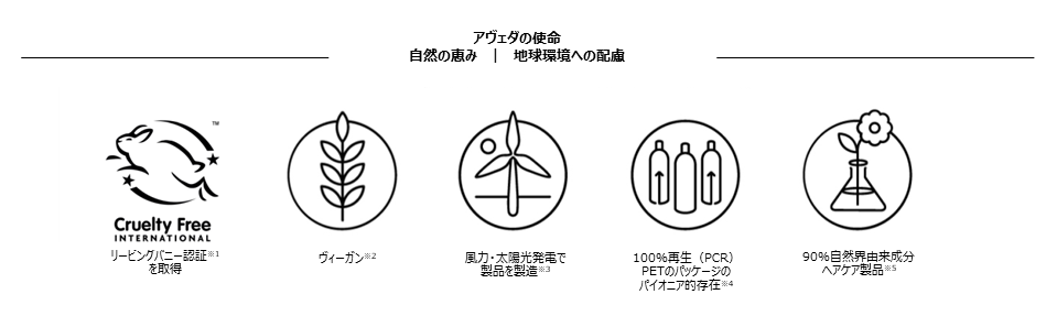 ※4 85%以上のスキンケアおよびヘアスタイリングのPETパッケージとジャー容器は再生(PCR)PETを100%使用しています。 またアヴェダは美容業界において、100%再生(PCR)PETパッケージを採用した初めての化粧品会社です。