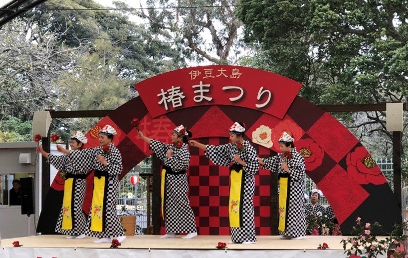 椿まつりのメイン会場である大島公園・椿プラザでは、様々な装花の演出を手掛けるフラワークリエイティブスタジオ「plantica(プランティカ) https://plantica.net/work/ 」デザインの椿まつり特別装飾を施し、美しく華やかな空間を演出し、大島特産の椿油やお土産品の屋台の出店、期間中の土・日・祝日には大島民謡やあんこの手踊りなど伊豆大島の郷土芸能をご覧いただけます。