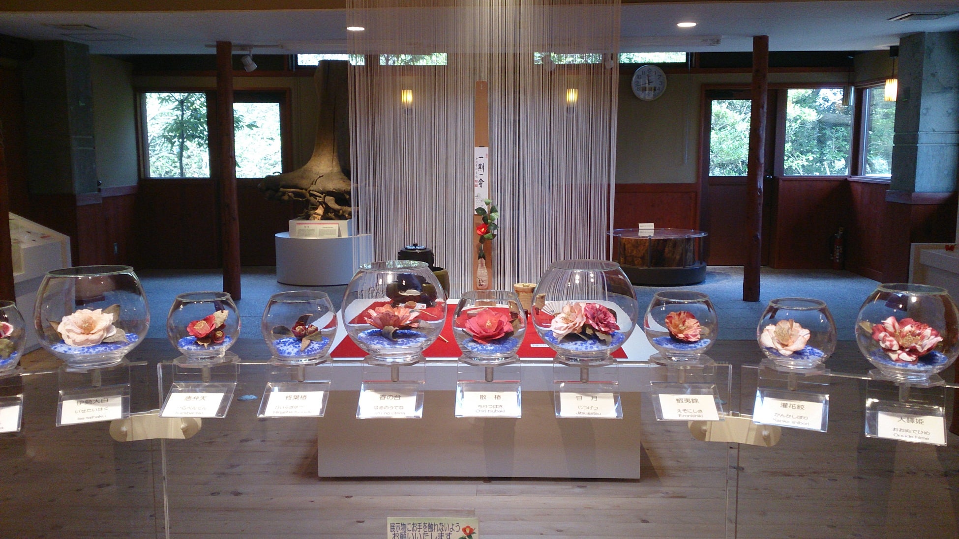 椿の切花や椿と関連のある美術工芸品などの展示をお楽しみいただけます。