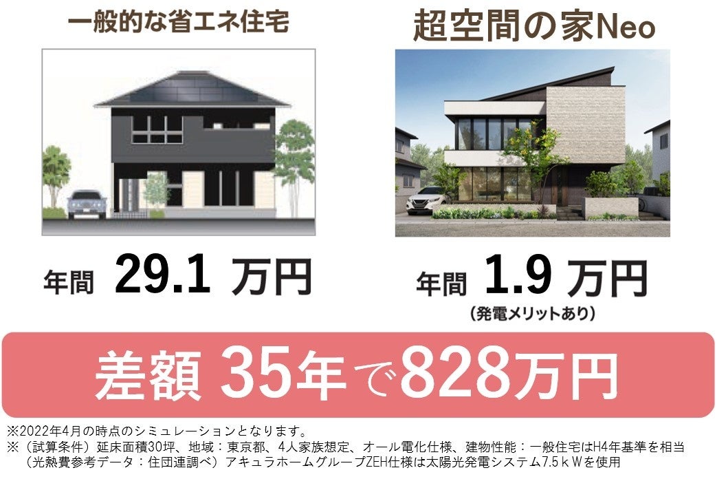 新型コロナウイルスの流行やウクライナ情勢などの影響により、エネルギー資源の輸入価格高騰から電気料金やガス料金の値上げや物価の上昇が続いています。住宅は建てて終わりではなく、末永く住み継ぐもののため、新商品「超空間の家Neo」は、住み始めてから発生する光熱費などの生涯コストに着目しました。