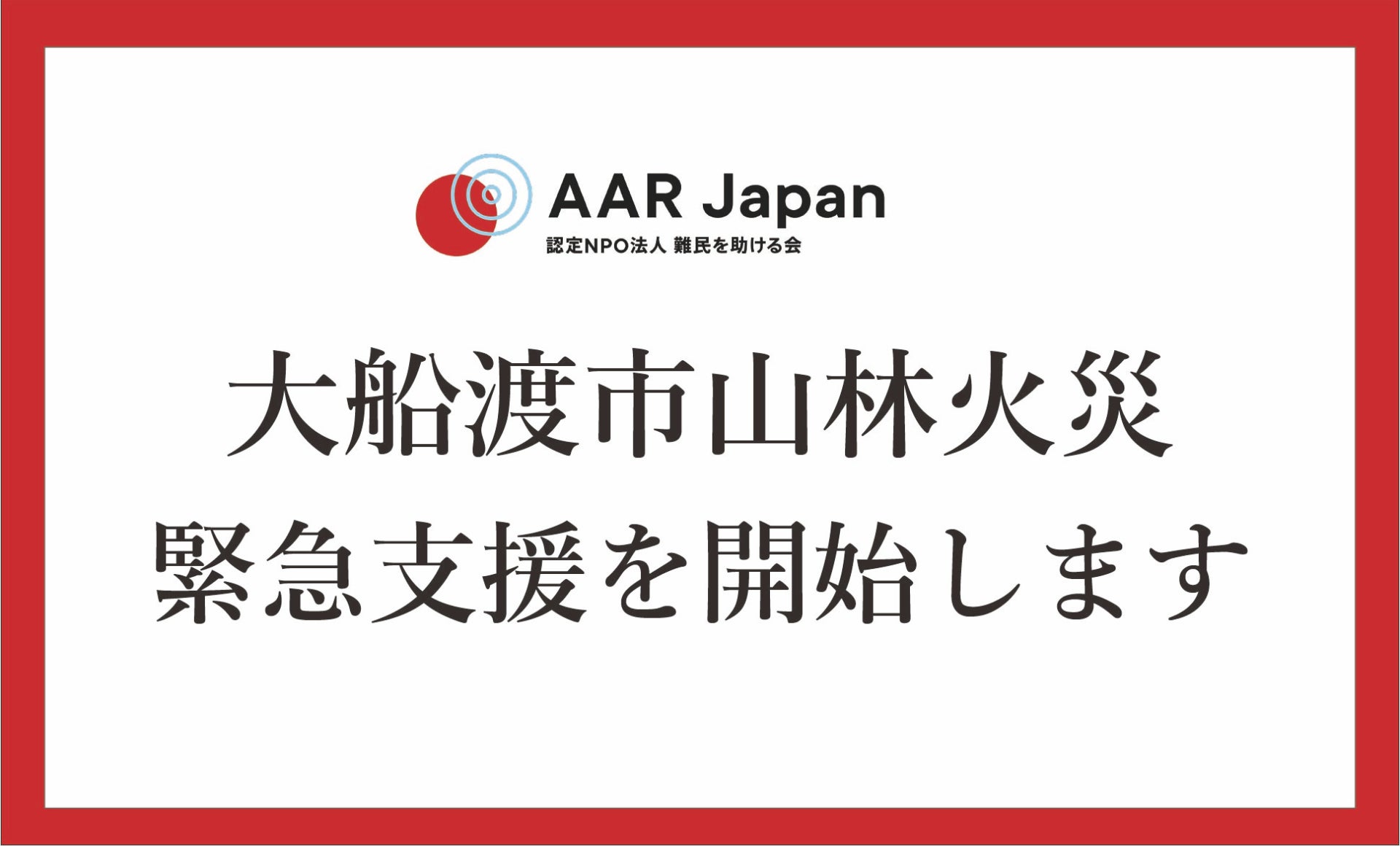 大船渡市山林火災の緊急支援を開始:認定NPO法人AAR Japan