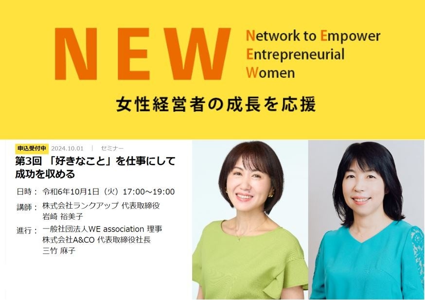 株式会社ランクアップの代表、岩崎裕美子がTOKYO女性経営者塾で登壇いたします。テーマは「好きなことを仕事にして、成功を収める」です。