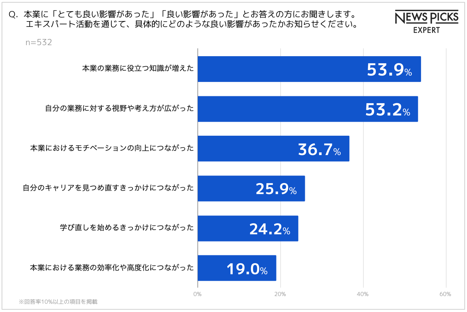■本業にポジティブな影響あり:エキスパート活動が増えるほど本業に「良い影響」