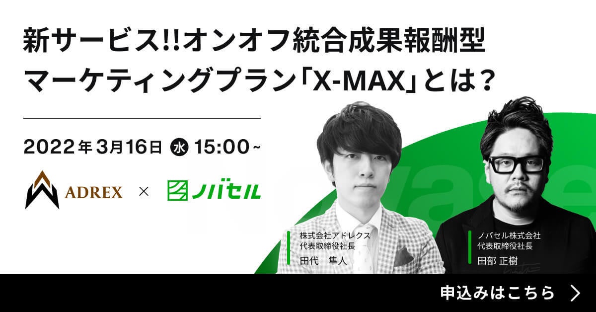 運用型テレビCMサービス「ノバセル」、”マーケティングの民主化”を基軸にサービスを拡充。第一弾として、オンオフ統合成果報酬型マーケティングプラン「クロスコミット」をADREXと共同開発