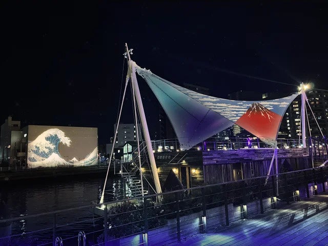 注5:「動き出す浮世絵展 TOKYO」とのコラボレーション企画で、天王洲運河両岸の建物や寺田倉庫 T-LOTUS Mの帆に、葛飾北斎の「冨嶽三十六景」シリーズなど世界的に有名な浮世絵や江戸の水辺の風景が描かれた浮世絵をモチーフにしたデジタルアニメーションのプロジェクションマッピング映像を投影。