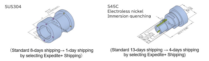 Our “Economy Shipping”*1 option, which has been a popular choice since its launch, is designed for customers who schedule orders for delivery well in advance and procure parts with the highest priority on price. By selecting this option, customers can receive a 30% discount on the price with no change in quality. Conversely, there have been many requests for "procurement with the highest priority on delivery time" to avoid the lost opportunities caused by delays in assembly schedules or equipment shutdowns due to sudden design changes or machine breakdowns. In response to these requests, minimum 1-day shipping has already been offered for certain services, such as Sheet metal*2 and CNC milling*3.