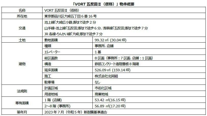 「区分所有オフィス®」を主軸に資産形成コンサルティングを行う株式会社ボルテックス(東京都千代田区 代表取締役社長 兼 CEO 宮沢 文彦、以下当社)は、「VORT五反田Ⅱ(仮称)」を取得しました。