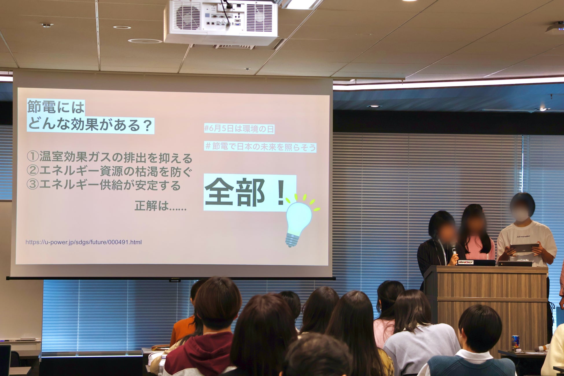 11月3日に行われた中高生によるプレゼンテーションは、2024年8月から3ヶ月にわたって行われた「QuizKnockと学ぶワークショップ ~地球温暖化とエネルギー問題を通じて、知って、感じて、考える!~」の最終回です。