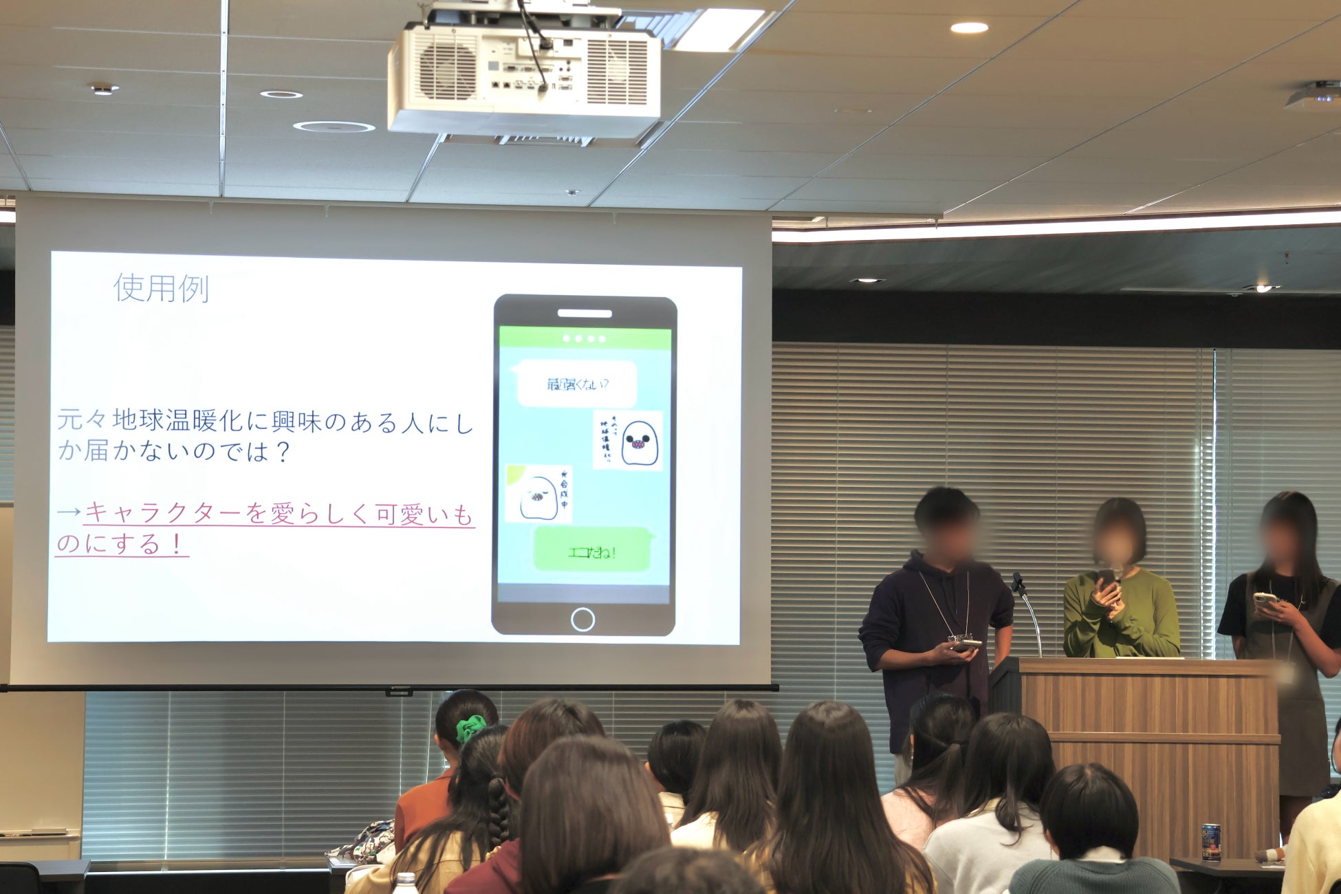 ワークショップの締め括りとして提示されたのは「地球温暖化をもっと身近に感じてもらうには?」をテーマに、より具体的なアイデアを、大人に対して本気でプレゼンテーションしようというミッションです。