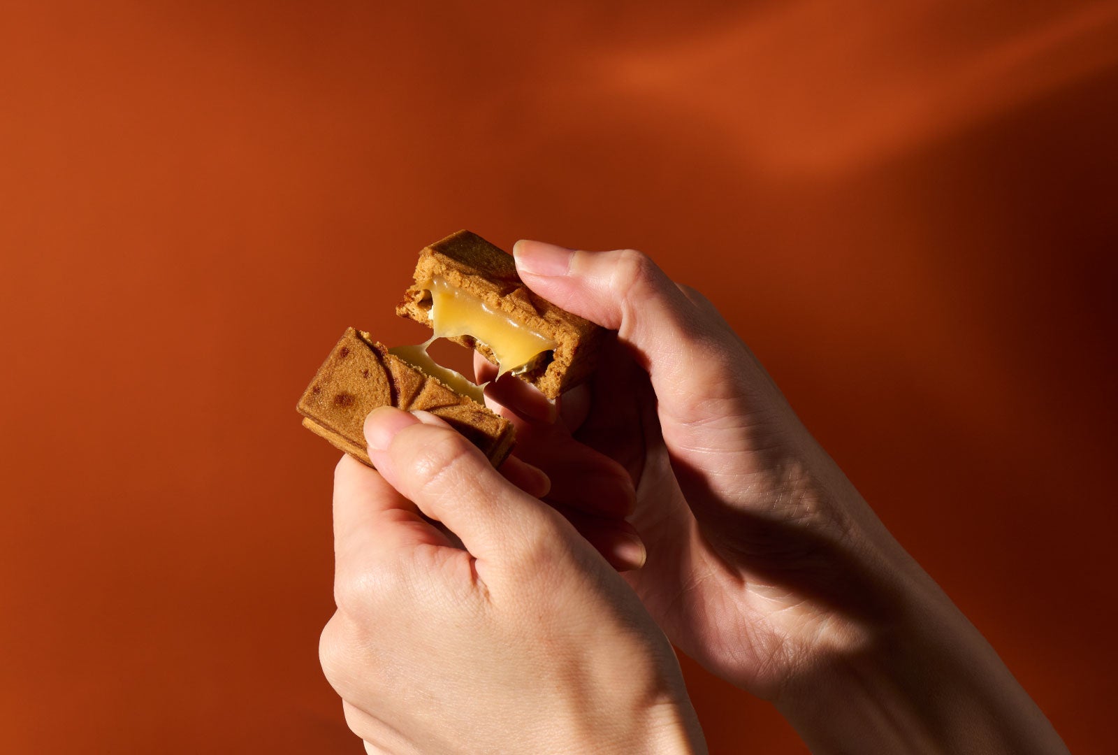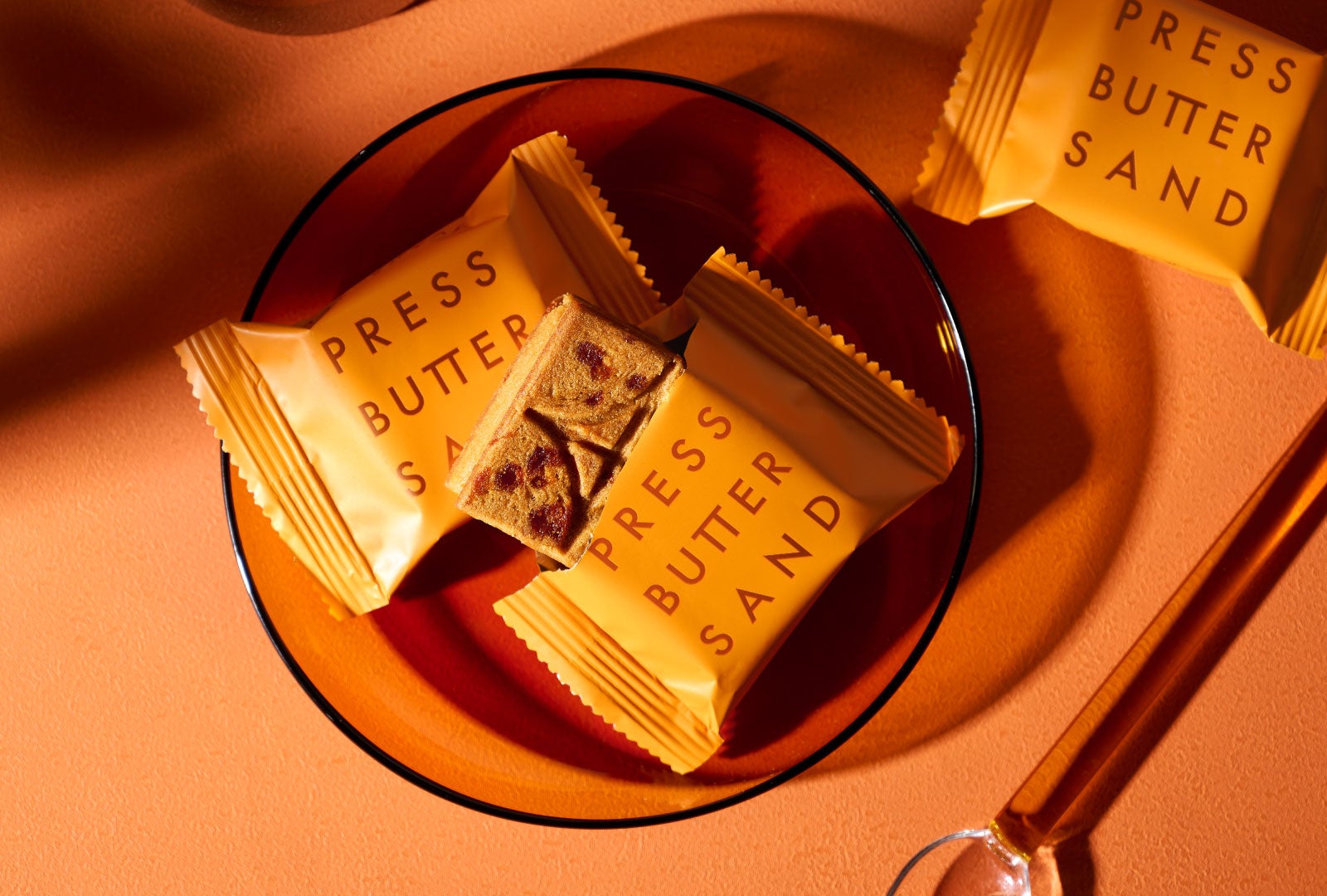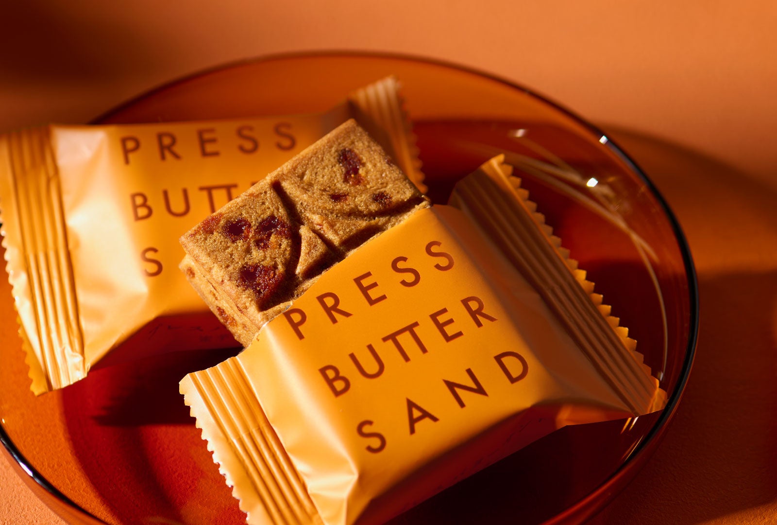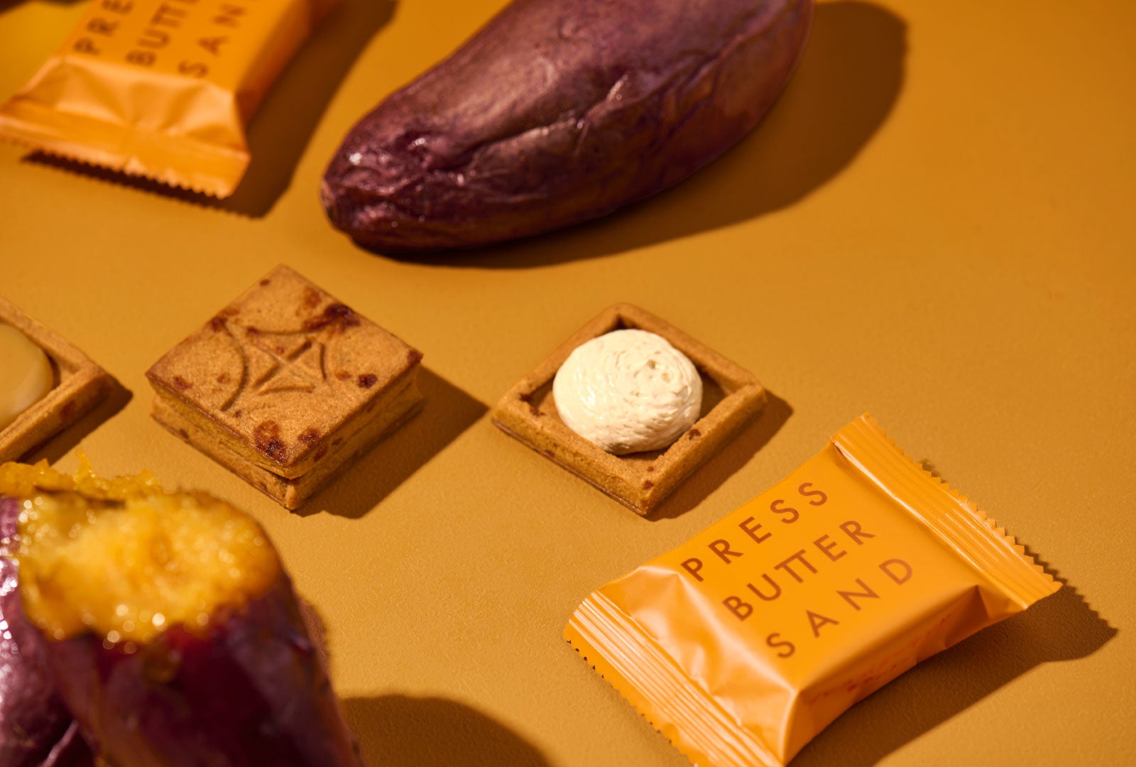 365日のギフトブランドとして幸せな瞬間をお届けする「PRESS BUTTER SAND」、今秋の主役は「蜜芋」。バターを乗せた焼き芋をイメージした、秋限定のバターサンドです。テーマは、蜜芋の皮から滴り落ちる琥珀色の “蜜” 。国産の安納芋を使った濃厚な蜜芋バターキャラメルが舌の上でゆっくりと溶け、メープルシュガーのまろやかな甘みが口の中に上品な余韻を残します。忙しい毎日の中で見つけた、ほんの少しの贅沢な時間。気分転換に “カリッサクサク” と響く軽やかな音色と共に、心にひとつの温かな記憶を刻んでください。