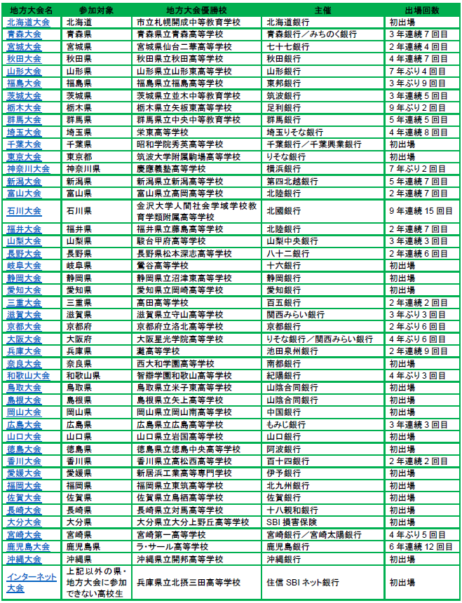 出場校:全国の地方大会およびインターネット大会を勝ち抜いた45校90名