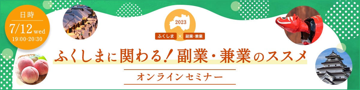 取り組みの第一弾として、首都圏をはじめとした福島県外在住の20代~40代の世代をメインターゲットとし、関係人口(副業・兼業)および移住・転職の意識醸成を目的とするオンラインセミナー「ふくしまに関わる!副業・兼業のススメ」を2023年7月12日(水)に開催します。