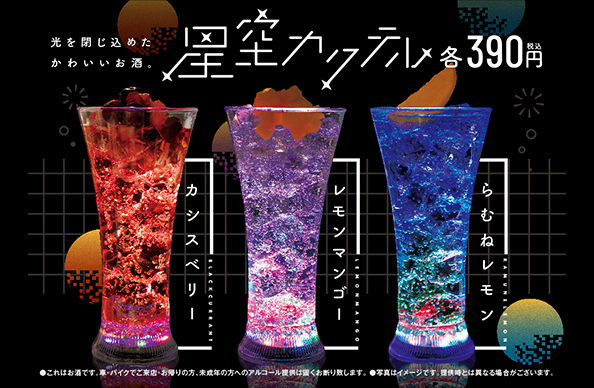 『超新星爆発(ビッグバン)カレー』の写真に「#京都デカ盛り」のハッシュタグをつけてInstagramで投稿すると参加可能です。投稿画面をスタッフに見せると、ジャジャーンカラ京大BOX店限定メニュー「星空カクテル」をプレゼント!