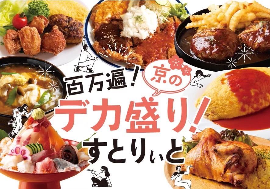 2021年10月10日、コロナ禍で落ち込んだ街に賑わいを取り戻すべく、地元の飲食店と京都中央信用金庫とが結束し、『京のデカ盛りすとりぃと』を立ち上げました。京都だけでなく全国のデカ盛りファンが百万遍を訪れ、お腹いっぱいの人たちで賑わう『満腹の街』を目指し活動しています。
