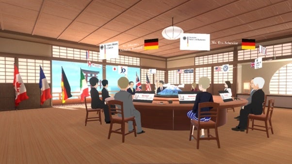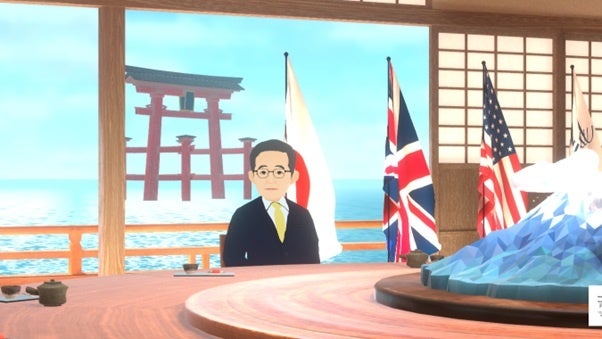 本会談では、参加者がオリジナルアバターを通じて発言する臨場感あふれる会議を目指し、クラスターが2つのメタバース(バーチャル)空間を制作しました。