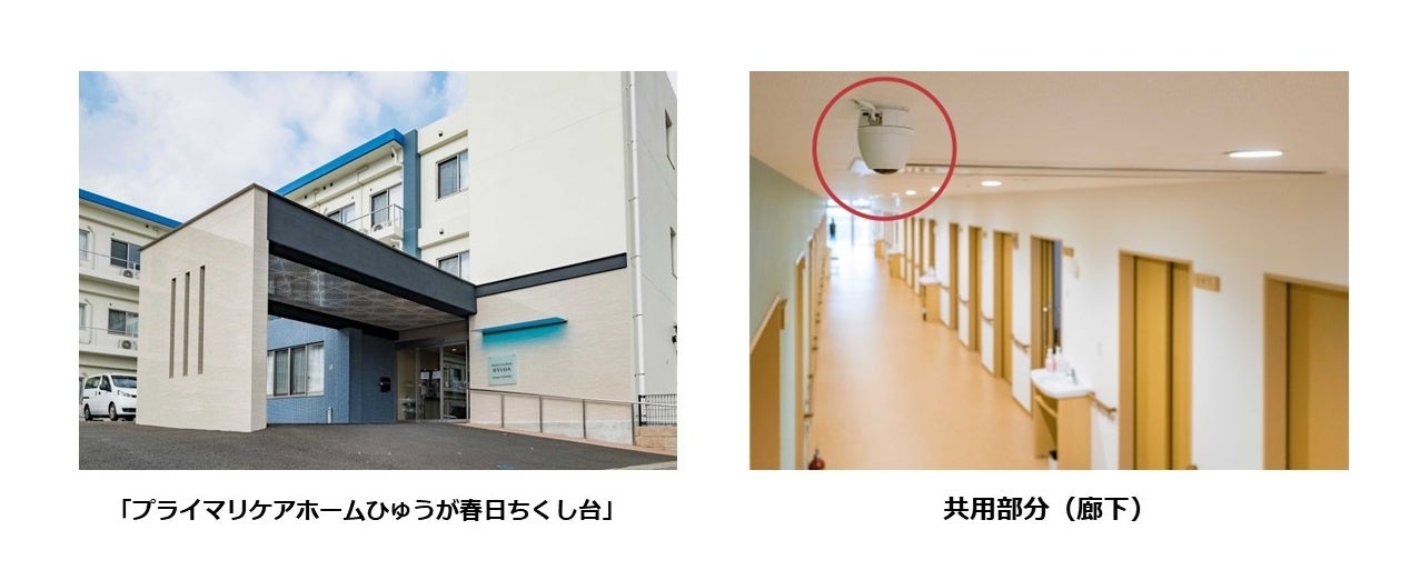 プライマリケアホーム事業では、住宅型有料老人ホームとして多くの方が入居する「プライマリケアホームひゅうが春日ちくし台」に14台のクラウドカメラを導入しました。カメラは、主に受付のほか各階の共用部分に設置されています。入居者の家族が可能な時間帯のなかで、入館・面会を実現するとともに、介護に携わる医療関係者や関連企業(リネン・給食)の来訪機会も頻繁なことから、入館者把握を行うことで、更なる安心安全の推進を目的としています。また館内の共用部では、入居者の迷子防止や行動パターンの把握などにも活用を進めています。今後は、転倒時の振り返り検証も視野に入れるほか、他の介護施設にもカメラを設置していきます。