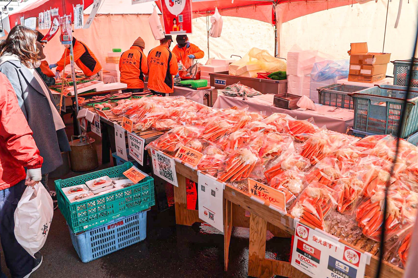 まもなく漁期が終了する「越前がに」はもちろん、2月19日に解禁予定の水ガニや、福井県で唯一越前町で水揚げされるベニズワイガニ、越前の美味しい海産物などを販売し、グルメコーナーでは、海鮮揚げや海鮮焼きそば、タコ飯などの海鮮グルメを提供予定です。