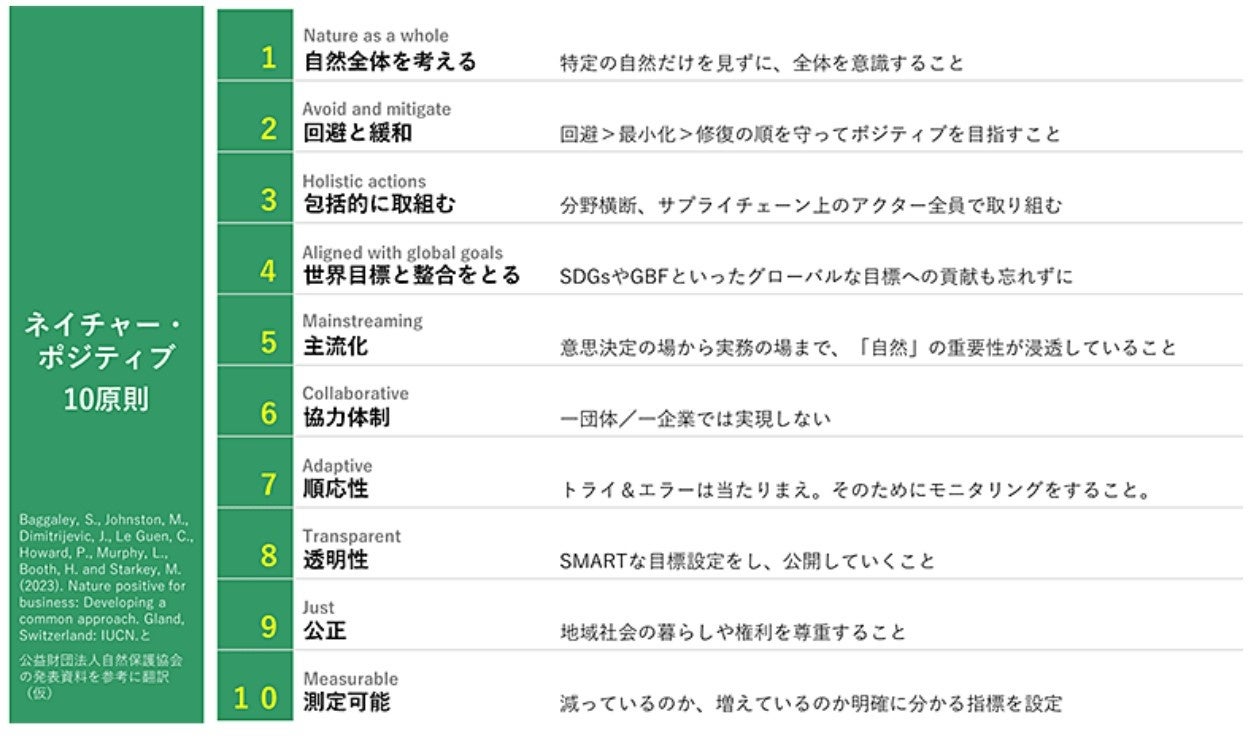 (※1) IUCNが世界に共通した「ネイチャー・ポジティブ」の条件として提示している「10の原則」