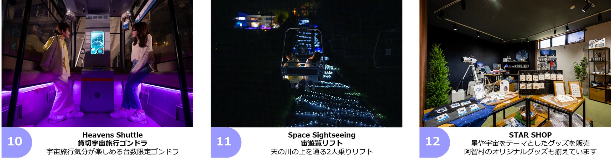 暗闇の中を進むゴンドラ、街の明かりが届かない山の上で見る満天の星、非日常の体験が皆様をお待ちしています。
