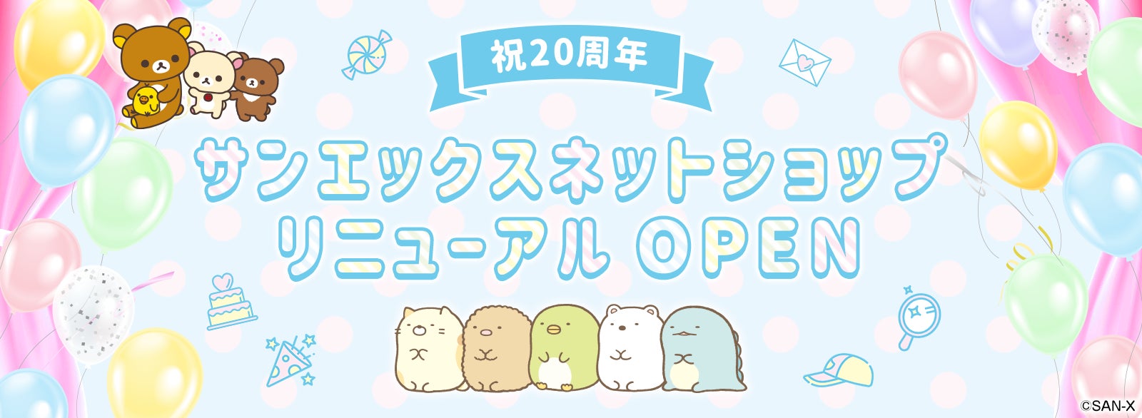 サンエックスネットショップは皆様ご愛顧のおかげで今年20周年を迎えました。そこで皆様にお買い物をより楽しんでいただけるようにデザインを一新しました。また、今後会員の方への新サービスも開始予定です(詳細は後日お知らせします)。