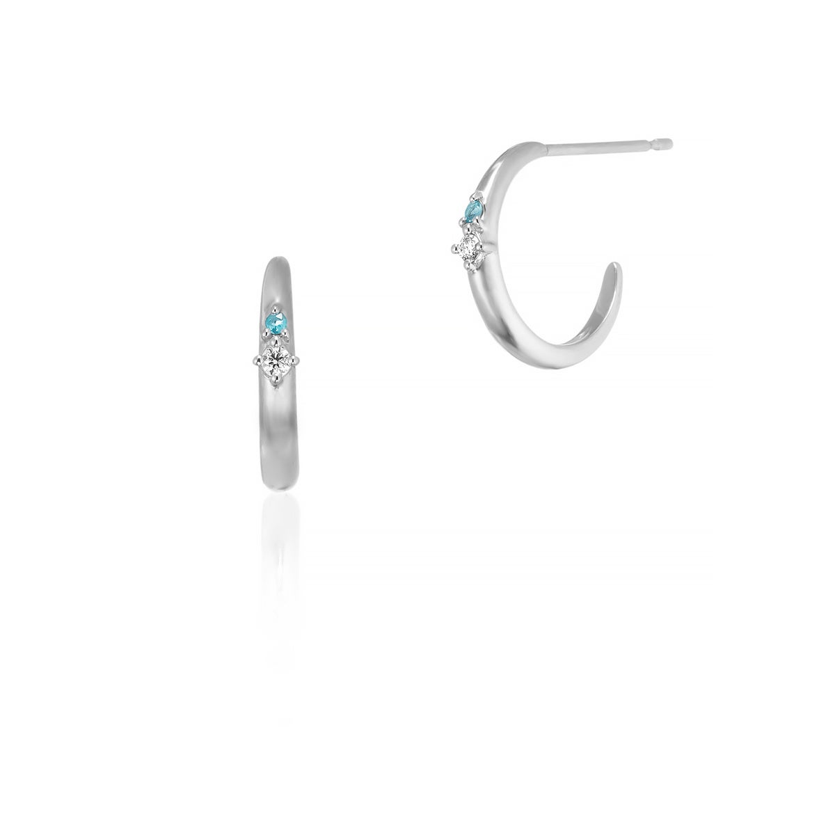 プラチナジュエリーには、世界三大希少石のひとつ、パライバトルマリンをあしらいました。パライバトルマリン、ダイヤモンド、アクアマリンの澄んだ輝きが揺れるネックレスや、涼やかなストーンの魅力をシンプルな曲線美で引き立てたピアスが登場。