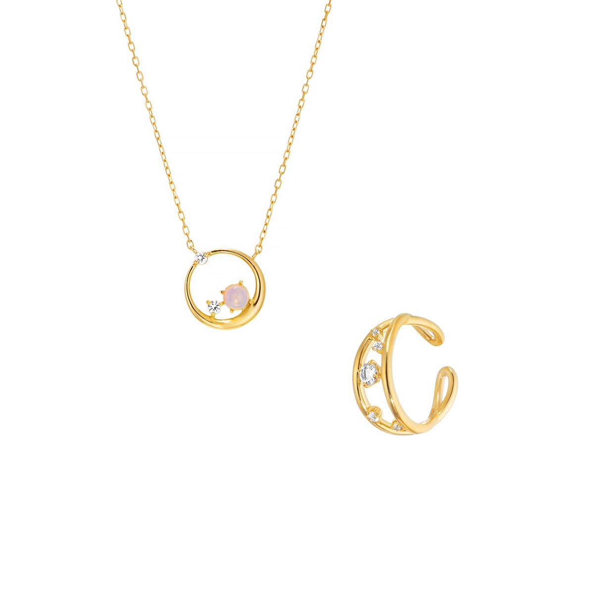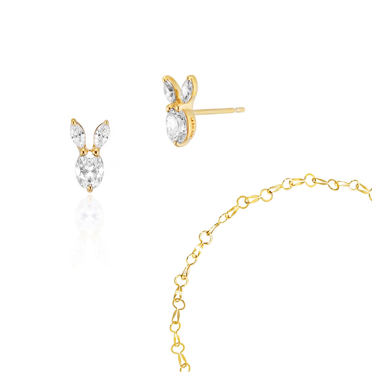 大きく前に跳ぶ様子から「飛躍」や「向上」などのポジティブな意味を持つ2023年の干支”うさぎ”をモチーフにしたデザインが登場。遊び心が光るキュートなピアスは、バニーチェーンのシンプルなブレスレットとセットに。さらに、うさぎと縁のある“月”をモチーフにしたネックレスとカフリングのセットもご用意しました。