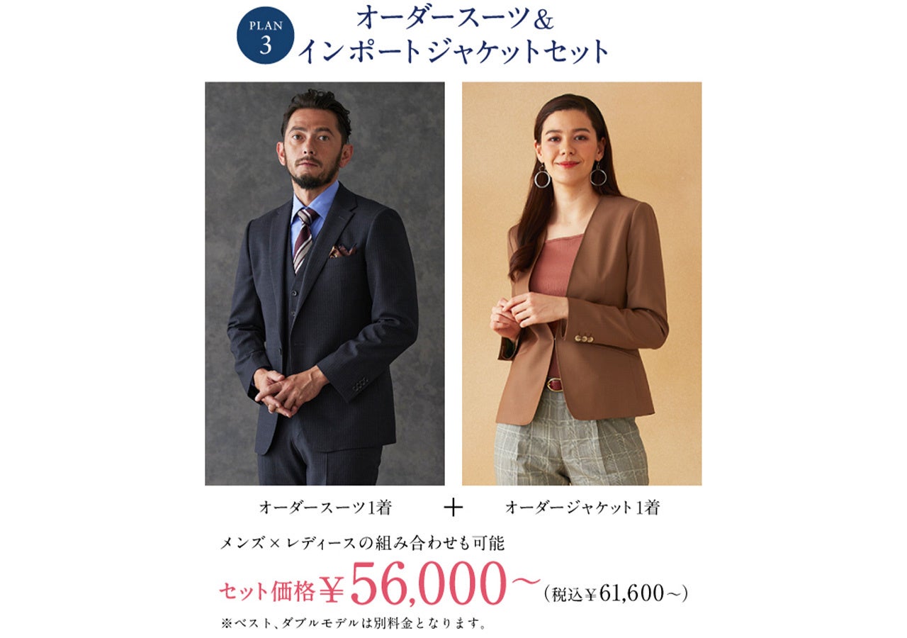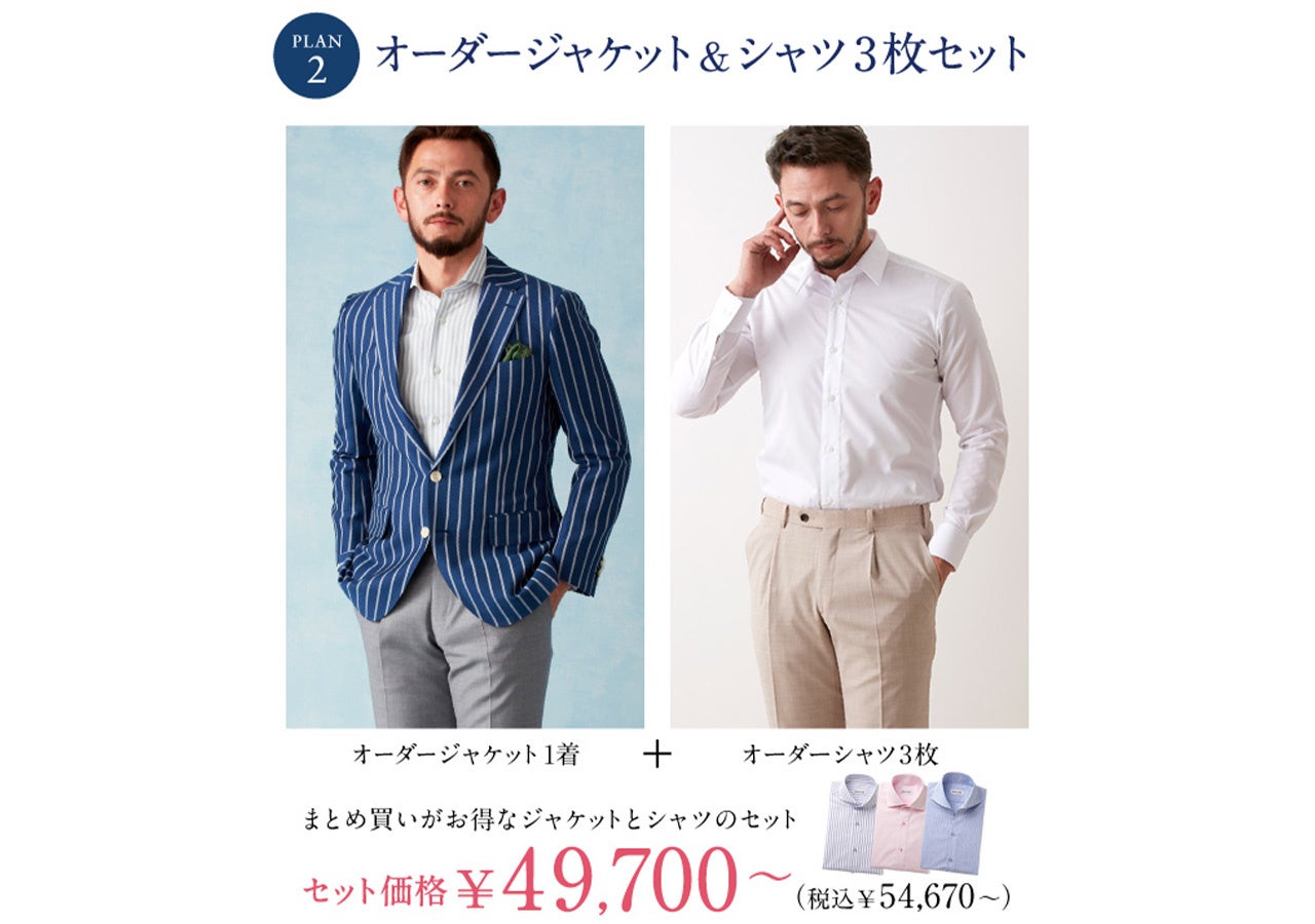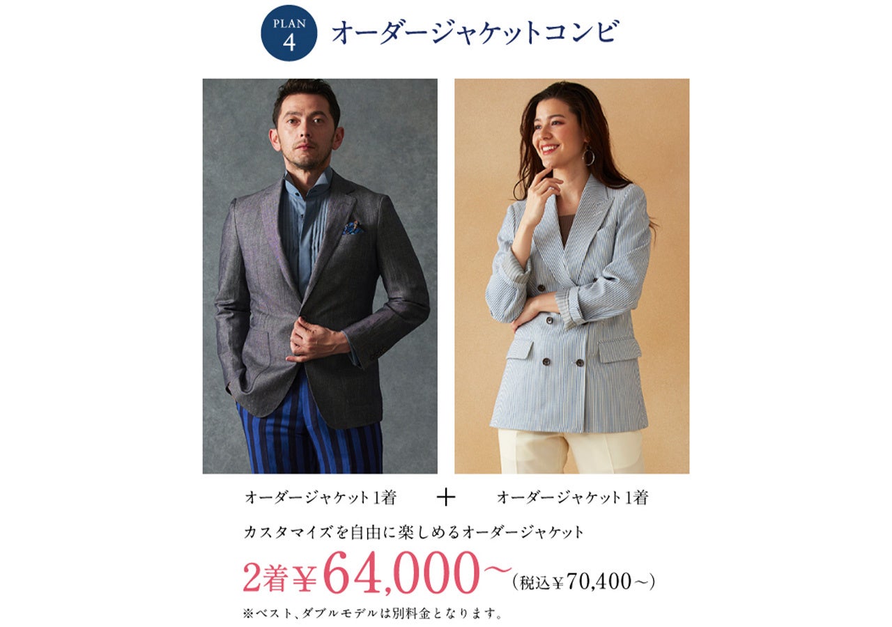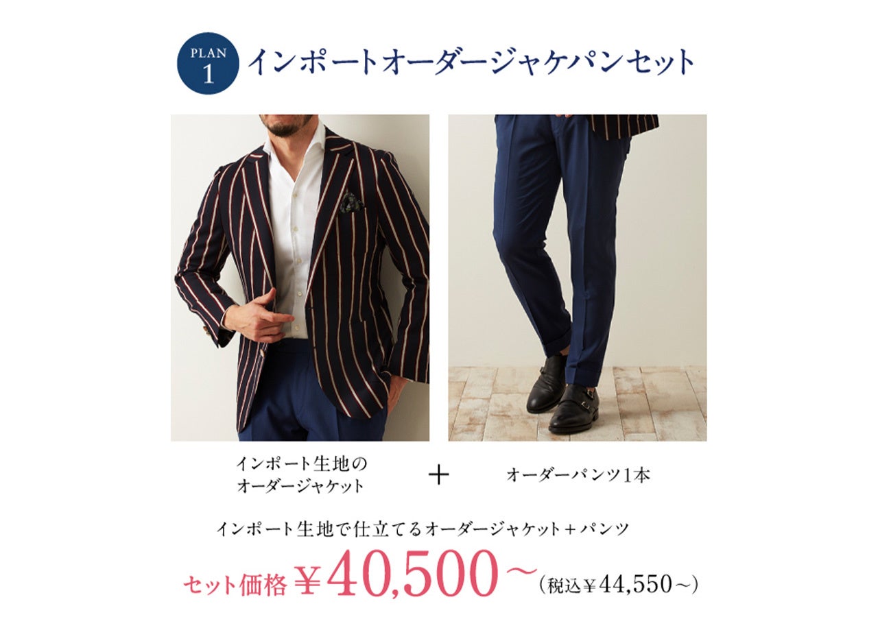 グローバルスタイルは、インポートジャケパンセットが¥40,500~(税込¥44,550~)で作れるお得な「オーダージャケットフェア」を刷新