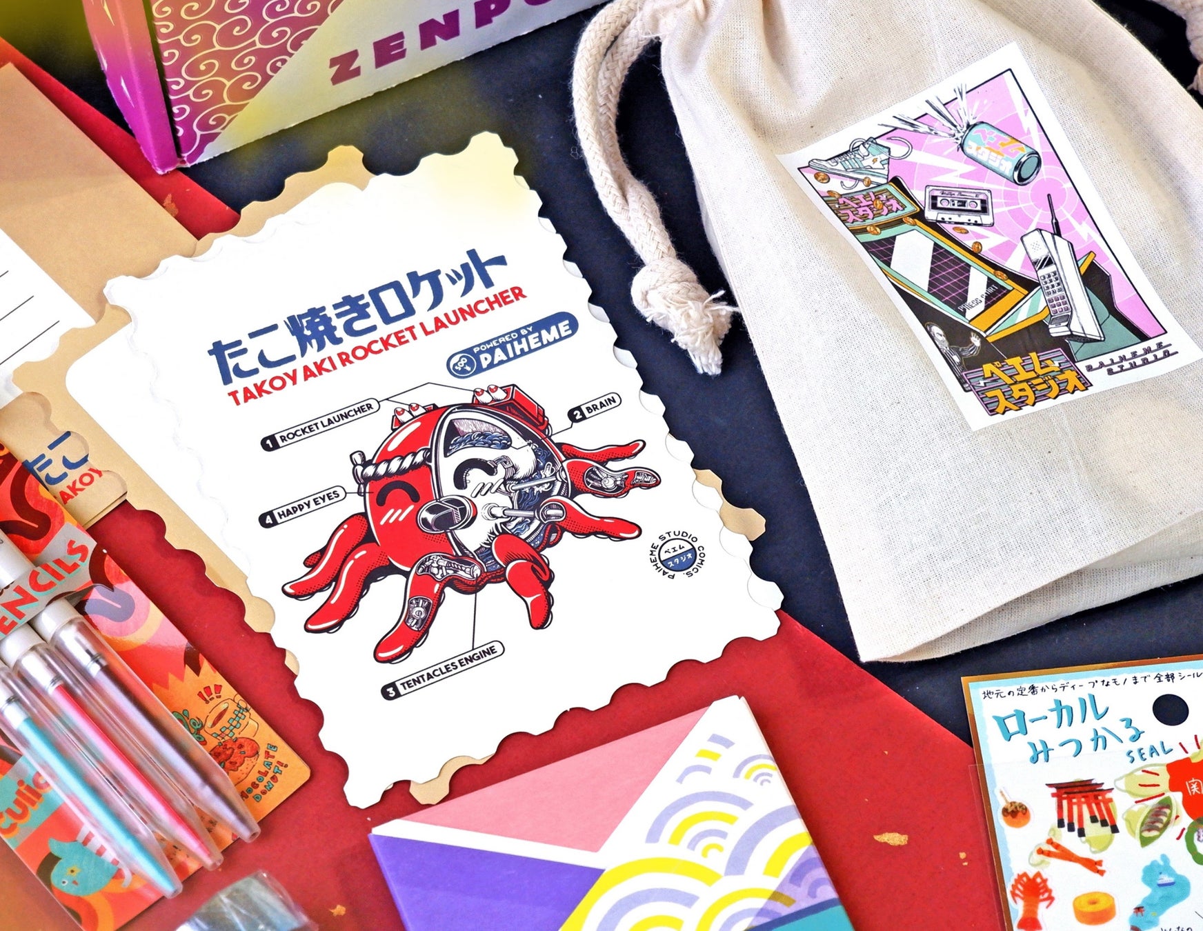 文房具ボックスに含まれるコラボアイテムは巾着とレターセットです。巾着は日本らしさがありデザインテイストと非常に相性が良いと考え、採用されています。ペンも入るサイズ感で、小物入れだけではなくペンケースなどにもお勧めです。レターセットは、「Zenpop」定番の商品。レトロなぺエムのデザインを活かしながらオリジナリティあふれる商品になりました。ボックスは数量限定の1,200箱で、7月1日(金)より予約開始となります。