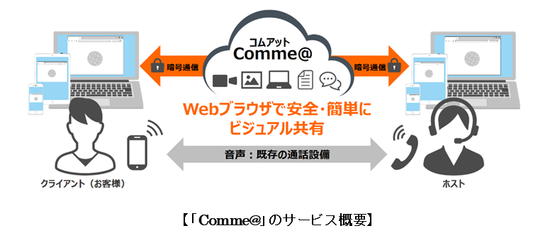 「Comme@」は、ブラウザを介してクライアント(お客様)とホスト間を簡単につなぎ、双方向の画面共有機能などを提供するクラウドサービスです。