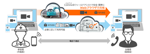 「Comme@フィールドアシスト」は、インターネットブラウザからの簡単な操作のみで、安心・安全に映像・資料を共有できるサービスです。