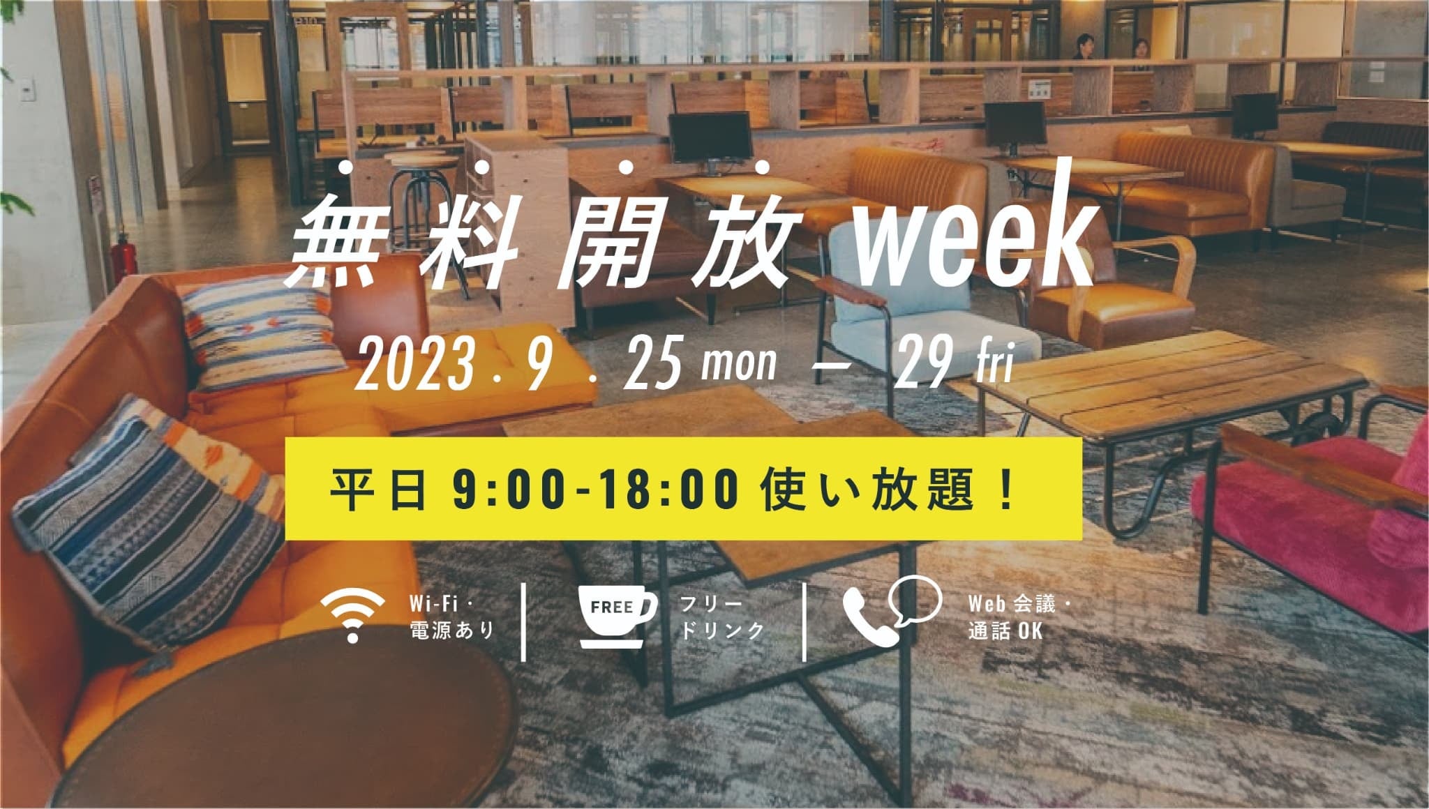9月4日(月)~8日(金)にフリースペース無料開放WEEKを開催し、多くの方に反響いただきました。お試し利用や今後の会員利用を考えている方へ向けて、9月25日(月)~29日(金)の5日間でもう一度開催することが決まりました。