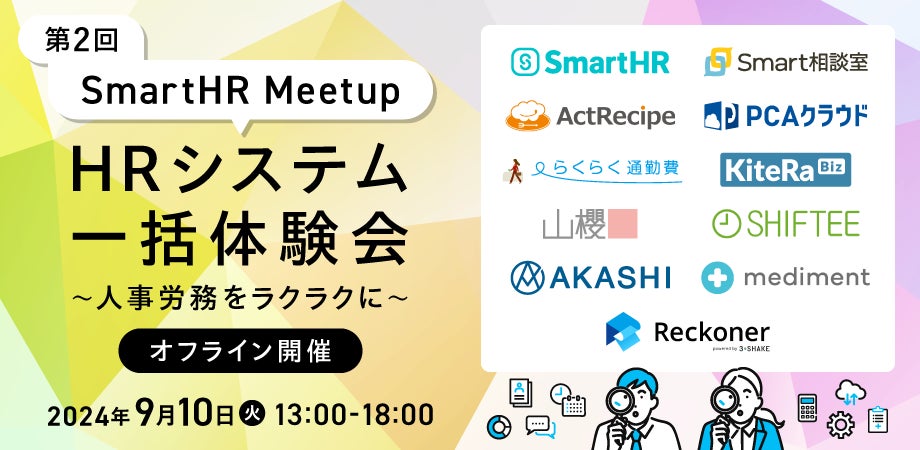 株式会社スリーシェイク(本社:東京都新宿区、代表取締役社長:吉田 拓真、以下スリーシェイク)が提供する、クラウド型データ連携ツール「Reckoner(レコナー)」は、2024年9月10日(火)に行われる人事・労務オフライン展示会「第2回SmartHR Meetup」にブース出展することをお知らせします。