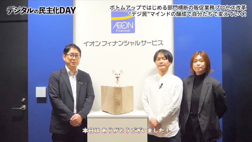 続いては、イオンフィナンシャルサービス株式会社 マーケティング・イノベーション本部 グループDX推進部 部長 角野 剛 氏、マネージャー 髙橋 浩也 氏、木村 久美子 氏 の講演です。
