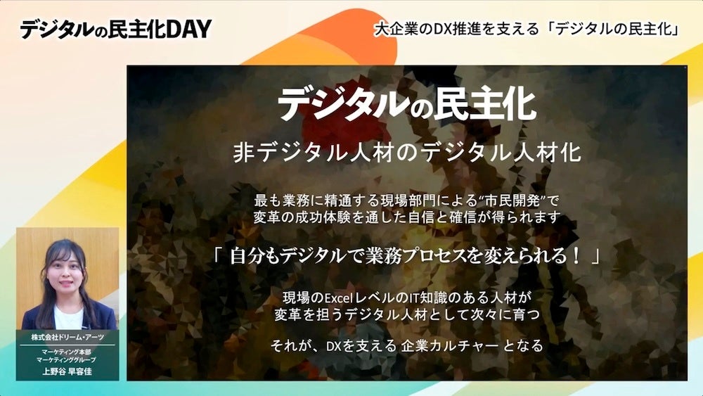 ※1 ドリーム・アーツでは「デジタルの民主化」を略して「デジ民」と呼んでいます。