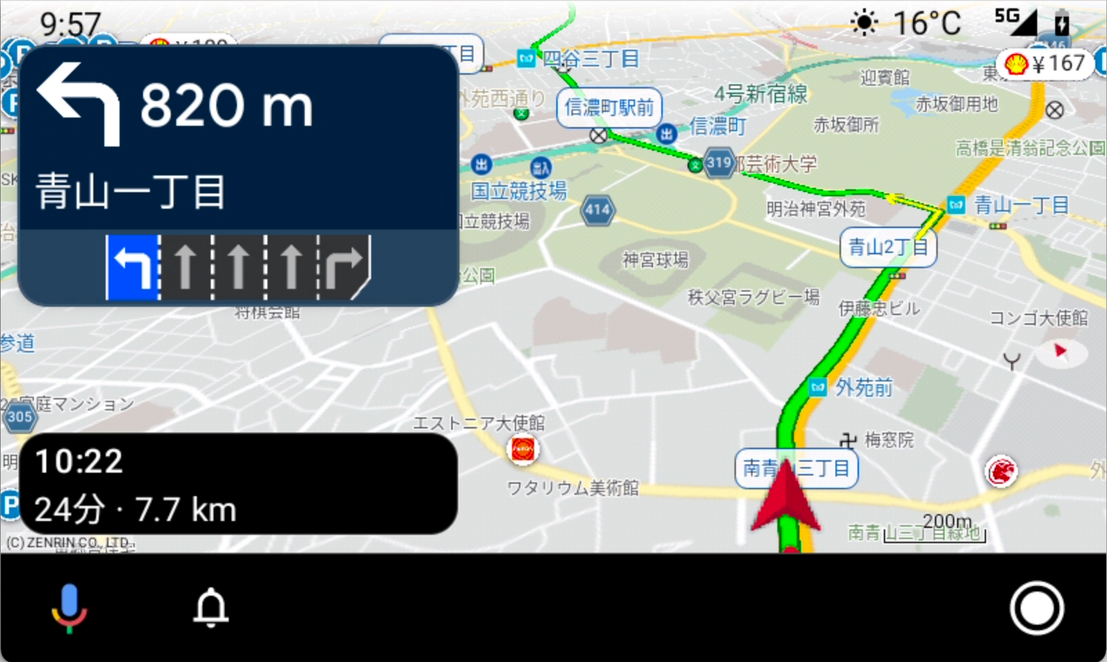 ルート検索をする際にスマホ側からも操作可能で、事前にスマホで調べたルートやスポットを「Android Auto」に接続後、すぐにナビを利用することができます。