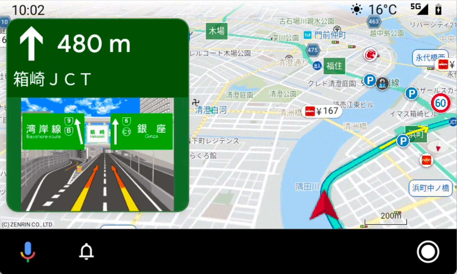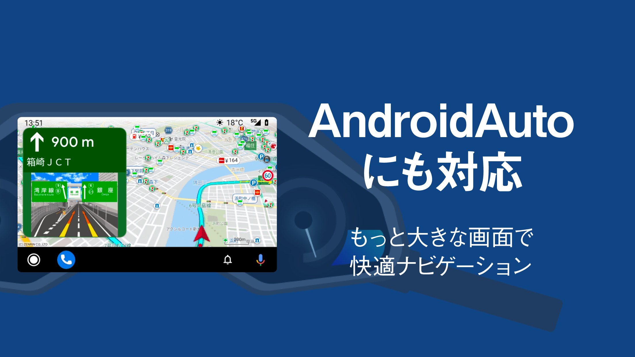「Android Auto」への対応により、車載ディスプレイと連動することで、バイク車両において、車載ディスプレイに最適化されたUIでのルートの表示および案内が可能になるため、より高い視認性、操作性でご利用になれます。走行中の振動による、バイクからスマートフォンが落下するなどといった不安も解消されます。