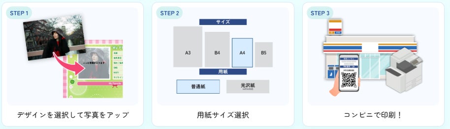 本サービスは、アプリ不要でスマートフォンやパソコンから簡単に作成でき、プロフィールシートを全国約58,000店舗のコンビニで印刷できるプリントサービスです。