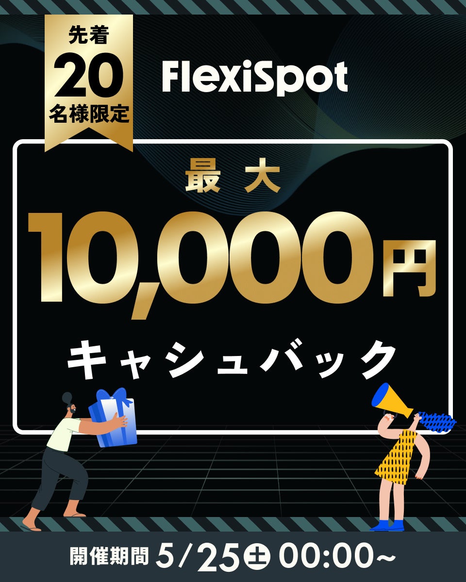 Flexispot8周年を記念して、最大50%OFFの値引き+先着購入キャッシュバック+現地組立半額サービスをご提供いたします。さらに、期間限定のSPセールで貯まっていたポイント分をお値引きして、対象の人気製品(E7 Pro/C7 Pro/X5)をお得にご購入可能です。