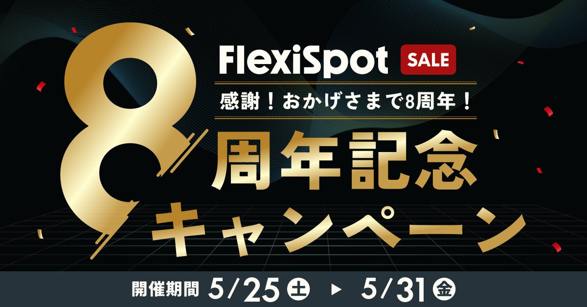 【FlexiSpot】日頃のご愛顧に、感謝を込めて!8周年記念キャンペーン5月25日(土)より開催