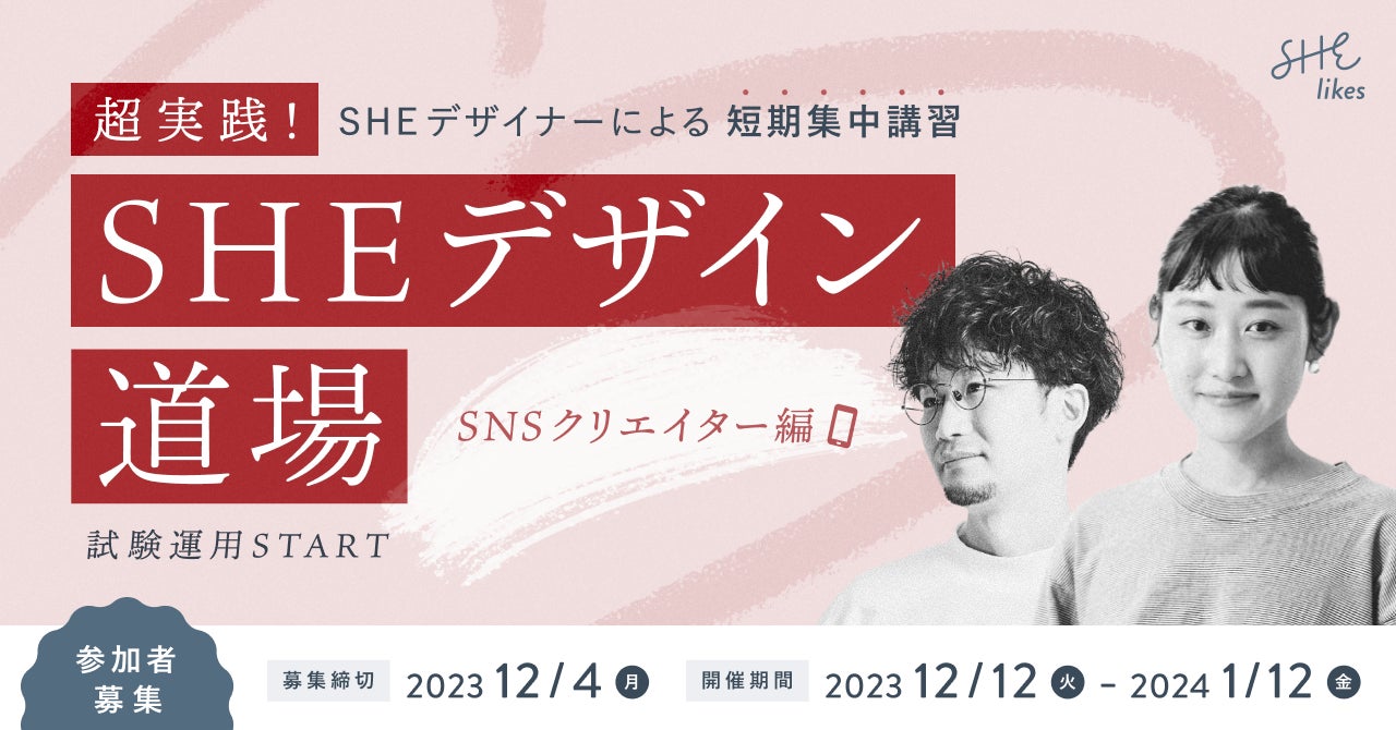 SHE現役デザイナー監修、企業ニーズに合わせたスキルを身につける超実践!「短期集中SHEデザイン道場(SNSクリエイター編)」を開催